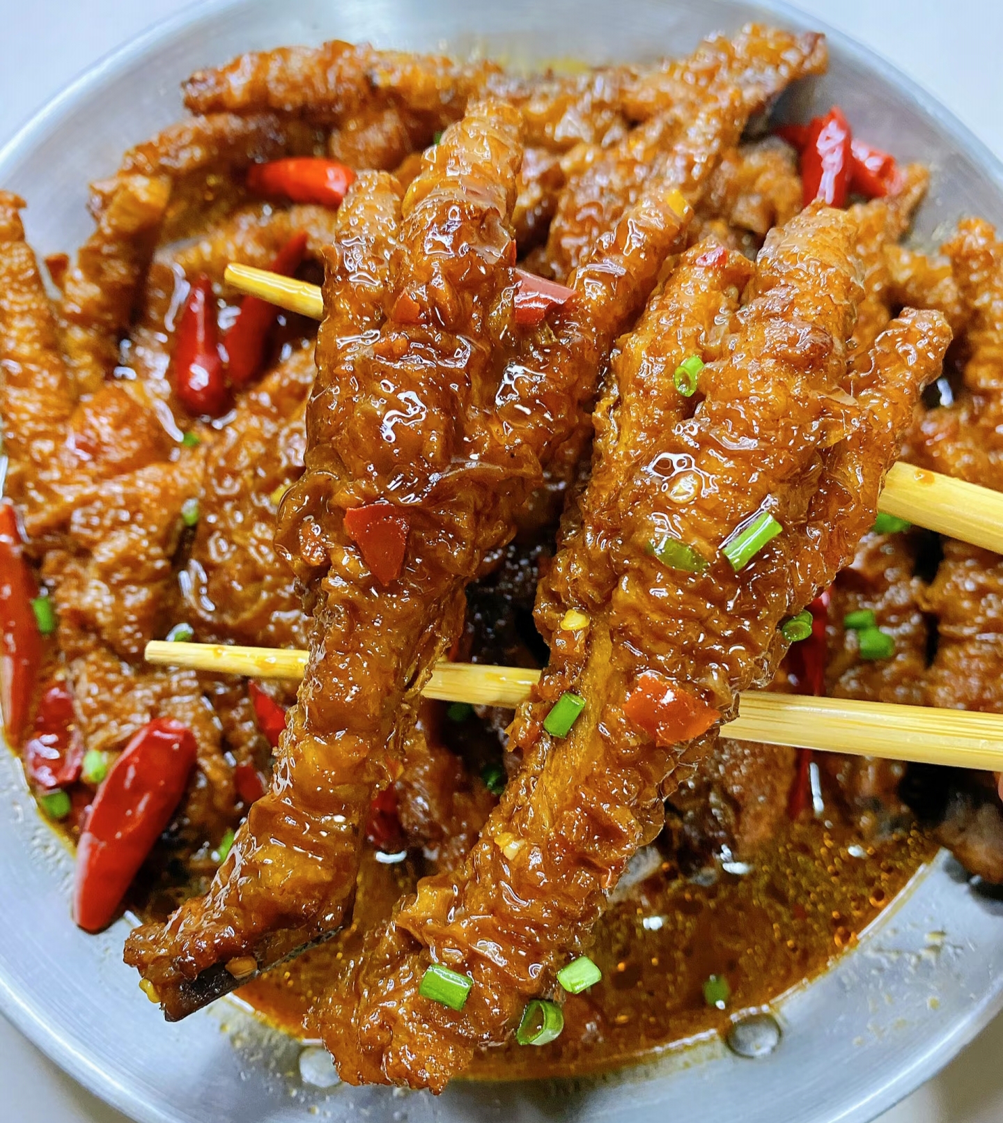 朋友们!今天我要给大家分享一道让人欲罢不能的家常美食,香辣虎皮凤爪。想象一下,那Q弹软糯的鸡爪,裹着浓郁香辣的酱汁,每一口都像是在舌尖上跳起了热情的桑巴舞,啃得你根本停不下来!