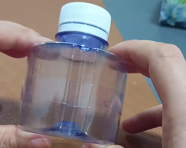 之后你就可以把矿泉水下半部分直接套在刚才切割下来的上半部分上面。你会发现两段矿泉水瓶会严丝合缝地组装在一起,成为一个迷你的收纳盒。