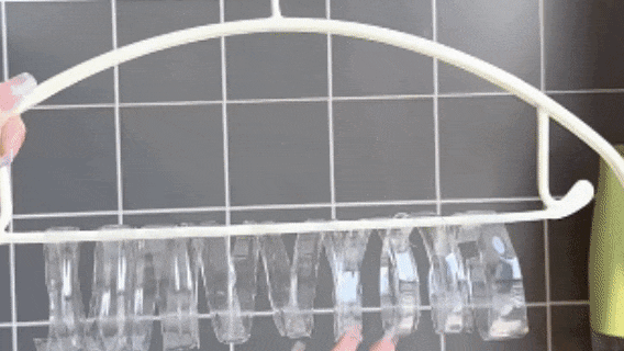 这样一来轻轻松松就能挂五六双的袜子,立体空间也得以有效利用,相比之下把袜子直接挂在衣架上,又将收纳空间扩容了。