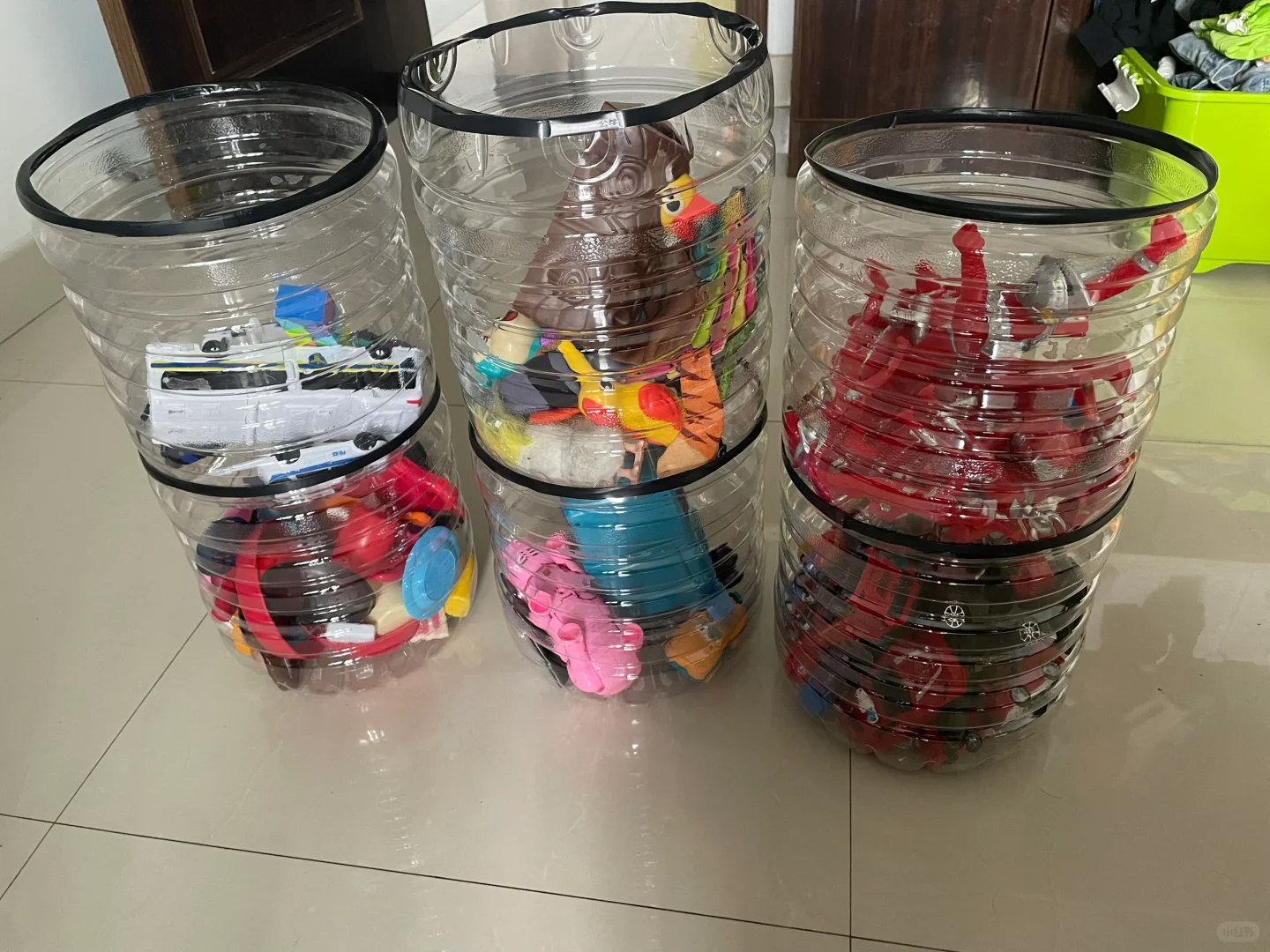 而且矿泉水瓶还是透明的,可以一目了然的看清里面装了什么玩具。另外还可以让孩子养成收纳玩具的好习惯,比单独买的收纳箱还要实用。
