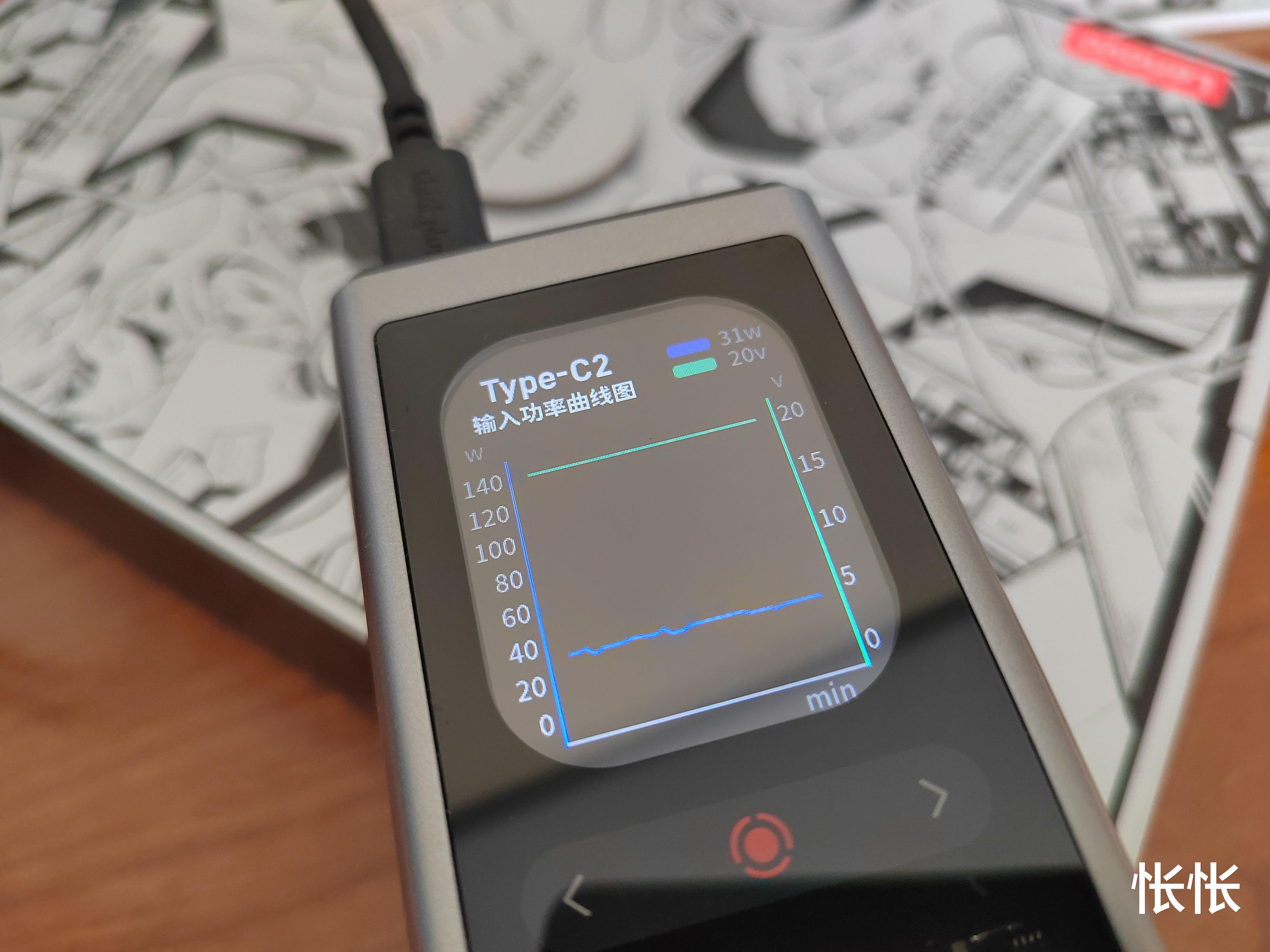 在使用过程中,我们可以实时的看到供电输入、电压、功率、温度等信息 ,在显示方式上不单单是一串孤单的数字,而是做一个了个跑车时速仪表盘的电量设计,跟随电量实时变化的小绿条提示,对于相关输出输入数据还可以进行曲线展示,可以更直观主动的了解到趋势的变化,通过主动式的展示,方便对输入输出、温度数据的展示以为还有高低温的弹窗报警提示,可谓是让我们感受到赛博设计巧妙搭配和美学功能极致融合。