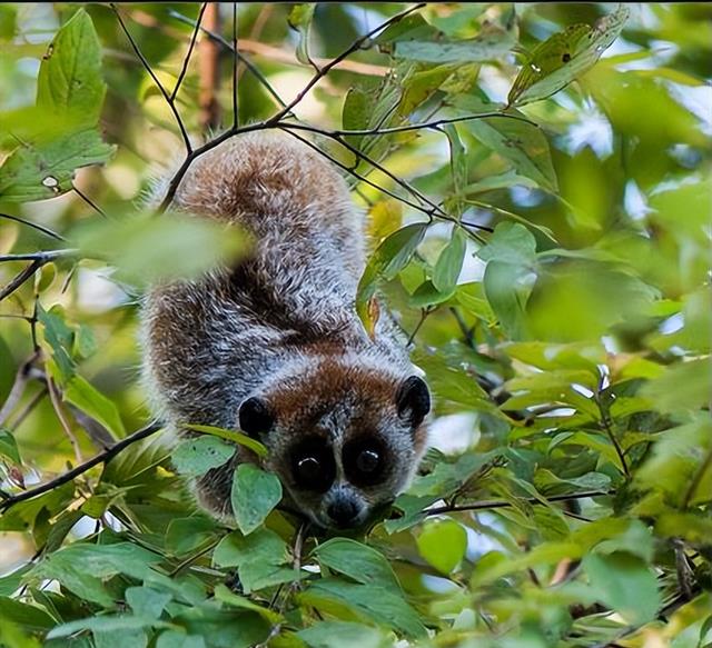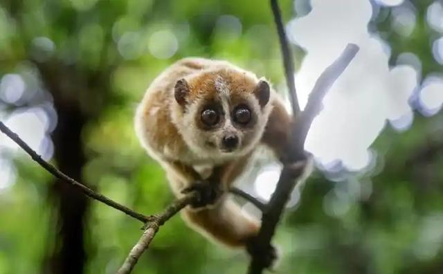 倭蜂猴又叫小懒猴,是中国体型最小的原始猴种,也是世界上最小的灵长类动物之一,它体长通常在18至21厘米之间,体重仅有300至500克,体型娇小玲珑,十分惹人喜爱。