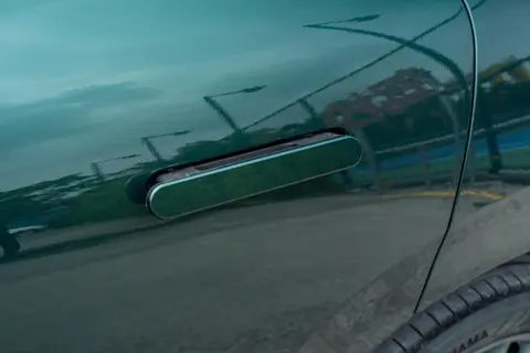 让人觉得实用的是电动隐藏门把手,不仅看着整洁,还能减少风阻,冬天还带自动破冰功能,北方的朋友再也不用怕下雪天门把手冻住打不开,这个设计用过之后真的会觉得很方便。前脸的贯穿灯组很有辨识度,晚上解锁车辆时,流动的灯光像 “迎宾灯语” 一样,仪式感拉满,全家上下都觉得挺有温度。前保险杠做得结实平直,大灯带着雕塑般的质感,摸起来没有廉价感。