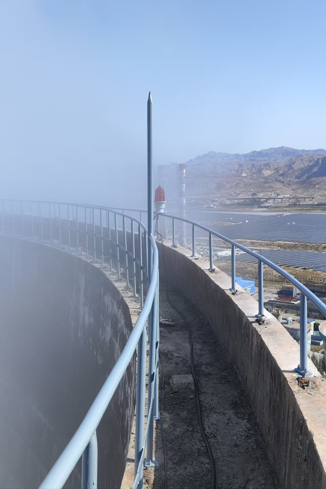 二、项目实施过程(一)前期准备阶段现场勘查与方案编制:施工单位联合防雷检测机构,对冷却塔顶部结构、原避雷针安装位置、接地极分布及周边作业环境进行实地勘查,结合冷却塔 “高空、薄壁” 的结构特性,编制《双曲线冷却塔避雷针更换专项施工方案》,明确高空作业安全防护措施、避雷针安装精度要求及接地系统优化方案,经建设单位(及监理单位)审核通过后实施;