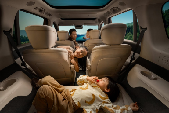 同时风云T11拥有5205*1998*1800mm的旗舰级车身尺寸与3120mm超长轴距,真正实现“大六座”空间布局。二排腿部空间达到同级领先的1022mm,第三排座椅支持全电动调节,即使身高1.9米的乘客也能舒展自如。车辆还支持一键语音切换1.8米大床模式,轻松拓展为儿童娱乐区或露营休憩空间,配合1590L超大后备箱与三温区空调,全面覆盖家庭出行、户外露营等多场景需求。