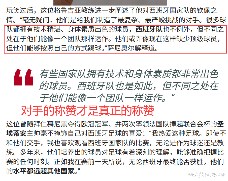 坦言西班牙是他们最复杂最严峻挑战的对手,缺少顶级球员却依然能按照他们的方式踢球。