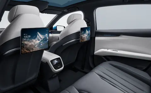 对于有孩子的家庭来说,后排加装的双 PAD 支架是一个非常实用的设计。它可以稳稳地固定平板,让孩子在旅途中可以尽情观看喜欢的动画、玩游戏或者学习,不再感到无聊和烦躁。更贴心的是,平板还能投屏到车机上,实现更大屏幕的显示效果,让孩子看得更清楚,玩得更开心。这一设计不仅解决了孩子在长途出行中的娱乐问题,还能让家长更加专注于驾驶,为家庭出行增添了更多的欢乐和温馨。