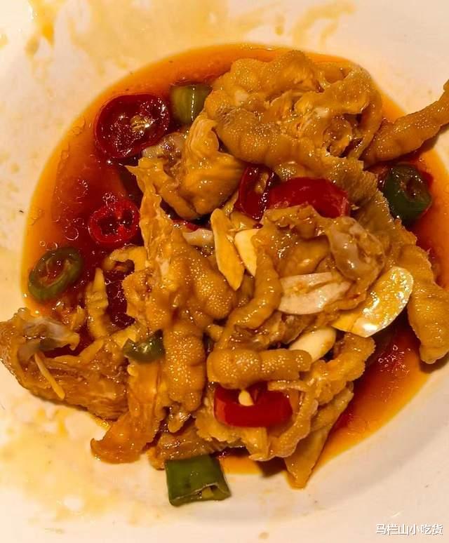 口味鸡爪:属于一道开胃的凉菜,鸡爪脱骨,和两种辣椒、生抽腌制,吃起来鸡爪肥美,Q弹,是小姐姐们很喜欢的一道菜。