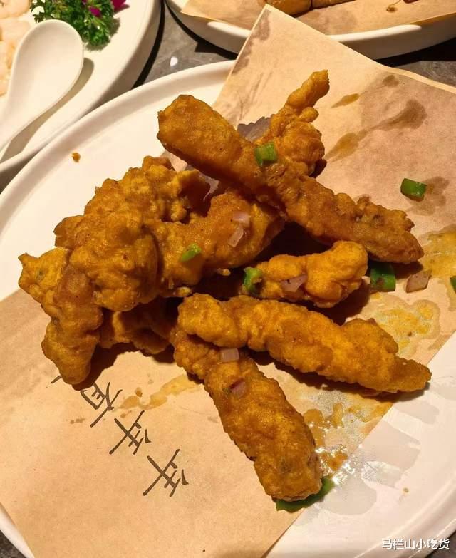 椒盐排条:这家店点击率超高的一道菜,用猪脊肉,经腌制、裹浆、油炸等工序制成,吃起来外焦里嫩、咸鲜适口,带有椒盐香气。