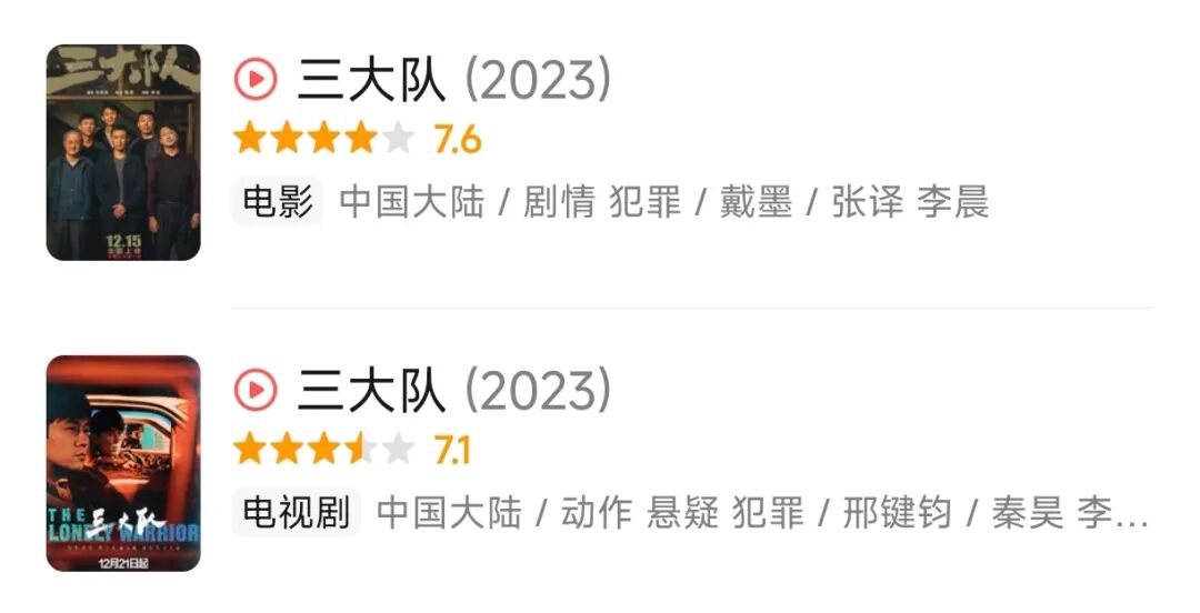 《三大队》原著是不到一万字的短篇纪实,影版用两小时讲完核心故事,剧版则通过扩充细节展现刑警群像的成长,两者各有侧重却不冲突,最终双双获得好评,证明"一鱼两吃"的成功需要精准匹配IP特质。