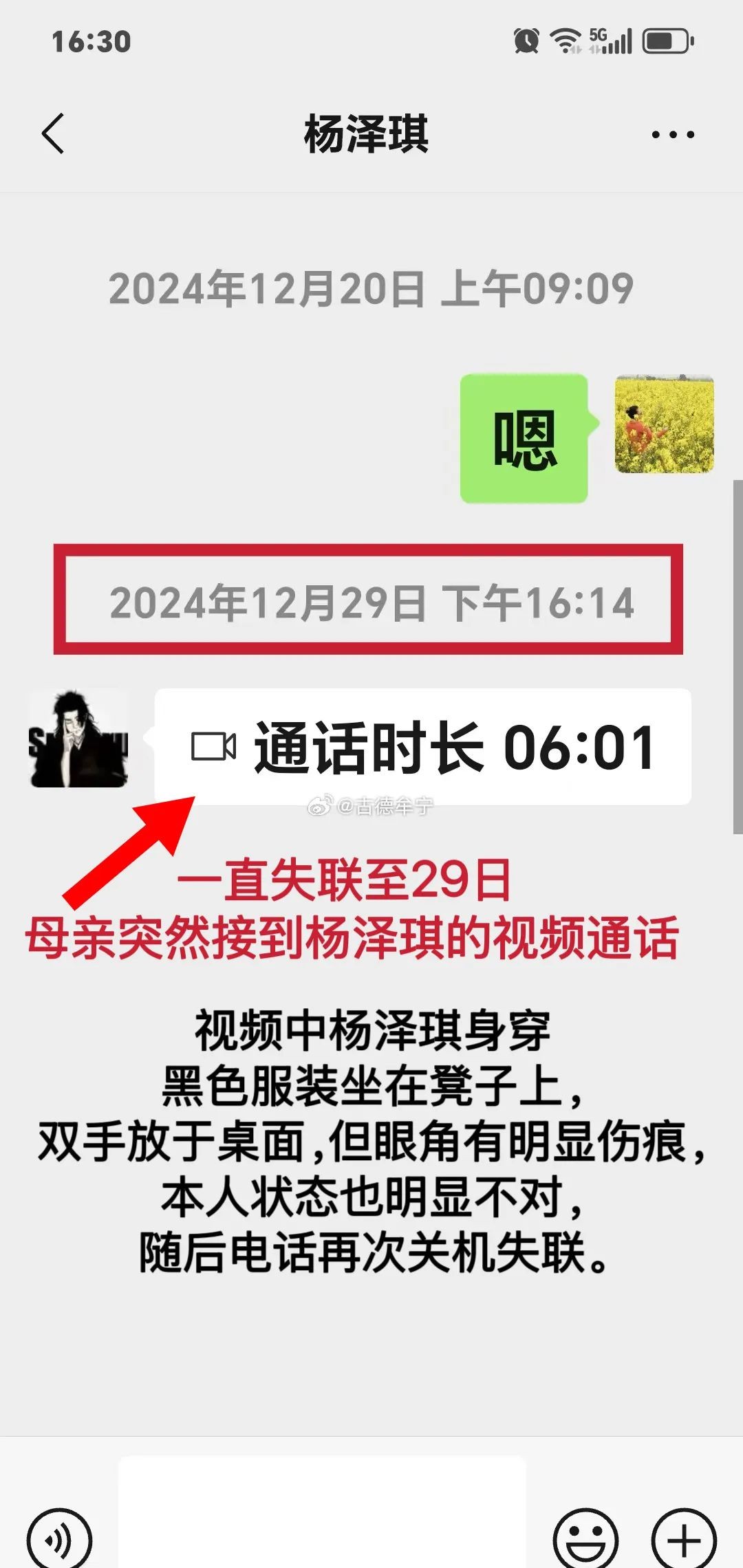 更让人揪心的是,12月29号,他居然和母亲进行了短暂的视频通话。视频里,他穿着黑衣服,眼神不对,眼角还有伤,这简直让人不寒而栗。 这通电话之后,他又消失了。 这短短的通话,透露着怎样的惊险和绝望? 家人朋友心急如焚,已经报警了,保定警方也立案了,还联系了中国驻泰国和缅甸的大使馆,各方都在全力寻找。