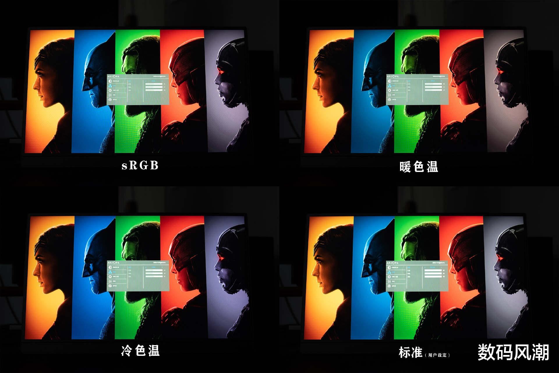 屏幕素质方面直接与DIY小厂拉开了差距,尤其是色彩表现没有令人不适的色差,100%的sRGB色域覆盖可以满足苛刻的要求。OSD内置不同色温、色彩风格的选择,个人比较习惯sRGB的图像风格,与目前其他在用的高刷显示器或Mac处在相同的图像表现。