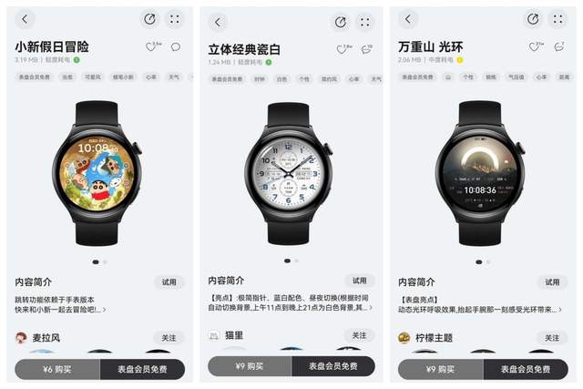 周末想找回童心,我就换上《小新假日冒险》主题,看着贱萌的蜡笔小新在手腕上动来动去,仿佛自己也回到了那个无忧无虑、守着电视看动画的午后,心情都变得格外灿烂;晚上和朋友有约,想搭配得精致一些,我会选择《立体经典瓷白》主题,它简约的设计和陶瓷般的温润质感,低调又不失格调,瞬间提升了整个人的品味。当我需要一点静气和思考的时候,我会换上充满山水诗意的《万重山 光环》主题,当远山在小小的屏幕上展开,浮躁的心绪都沉静了下来。