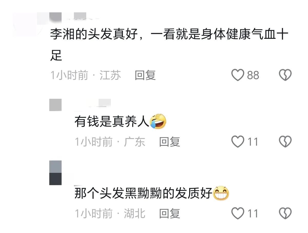 不少人说,李湘的头发一看就是有钱人,保养得好,平时吃的东西非常名贵,因此气血充足,头发才会这么黑。