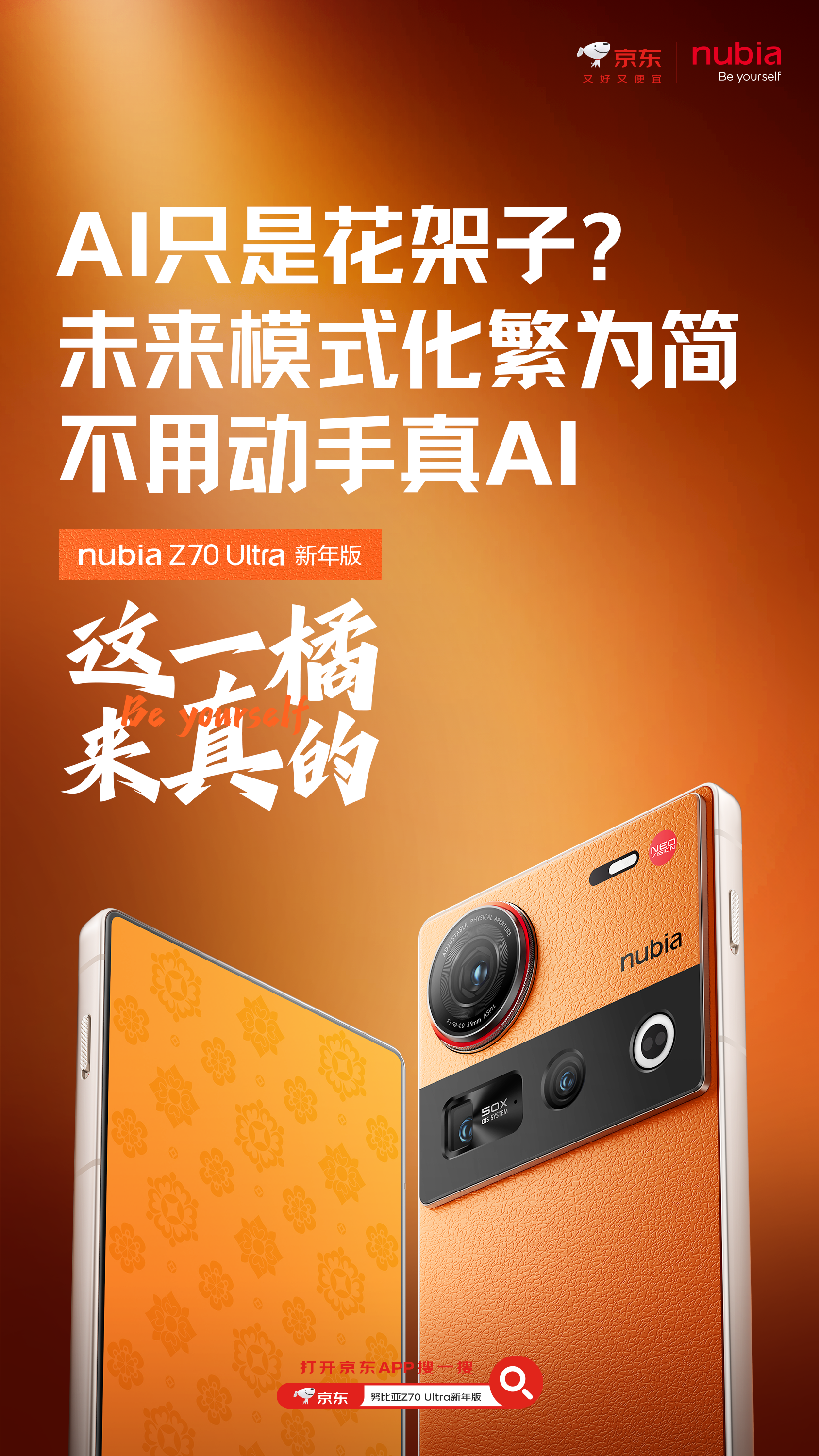 1月16日,努比亚Z70 Ultra新年版上市。新机在努比亚Z70 Ultra全面好屏、知己悦己的AI体验、Neovision泰山AI影像3.0基础上,采用了全新的橘色新年配色,并搭载多项新年专属趣味AI功能,满载着新年的美好祝愿,为用户带来喜悦与好运。新机提供16GB+1TB内存,配备一块努比亚智能手表Watch GT,售价6299元。