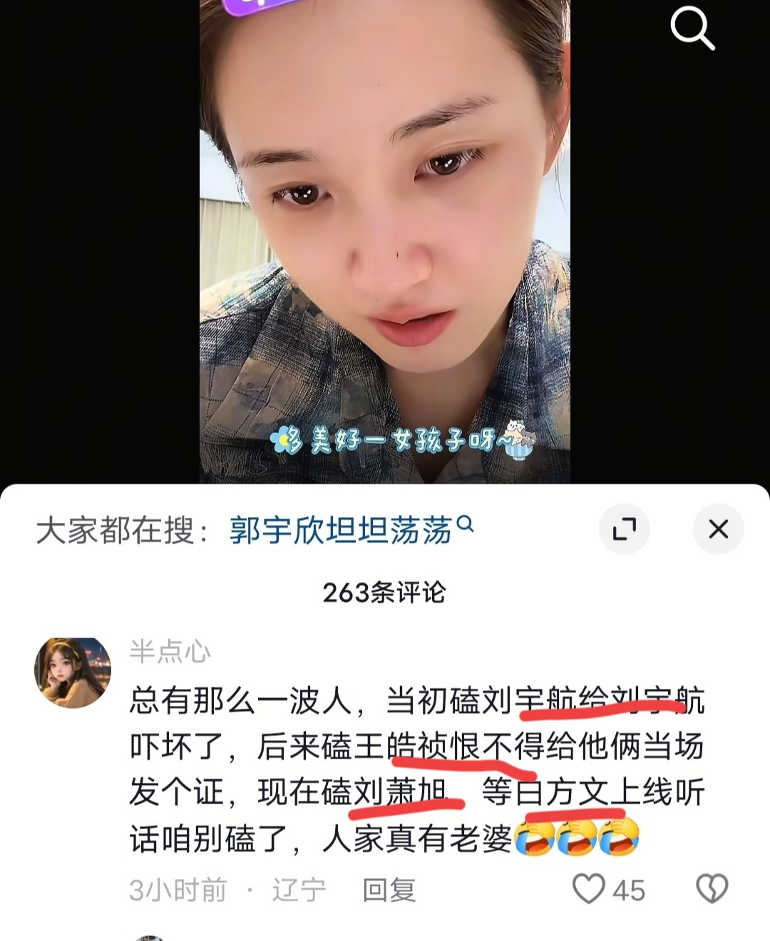 昨天直播中郭宇欣告诉大家:放心,我和老刘坦坦荡荡,现在主要专注事业。