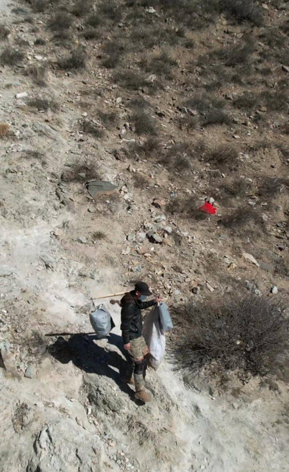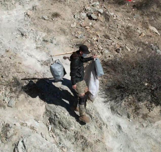 有一次,高伟像往常一样,来到奎素西沟捡垃圾 。那天,他的收获格外丰富,很快就捡了满满两大袋,足足有 50 斤重 。他用扁担挑着垃圾,沿着山路艰难地往山下走 。突然,他一脚踩在一块松动的石头上,整个人失去了平衡,重重地摔倒在地,脚踝传来一阵剧痛 。他挣扎着站起来,发现自己的脚已经肿得老高,每走一步,都钻心地疼 。但看着身边的垃圾,他心想:“这些垃圾不能就这么丢在沟里,我一定要把它们带下山 。” 于是,他咬着牙,强忍着疼痛,一步一步地向前挪动 。这 3 公里的路程,他走得无比艰难,汗水湿透了他的衣衫,每一步都仿佛用尽了全身的力气 。但他始终没有放弃,最终,他成功地将垃圾带到了车上 。从那以后,为了安全起见,他每次捡垃圾都控制在 40 斤以内 。