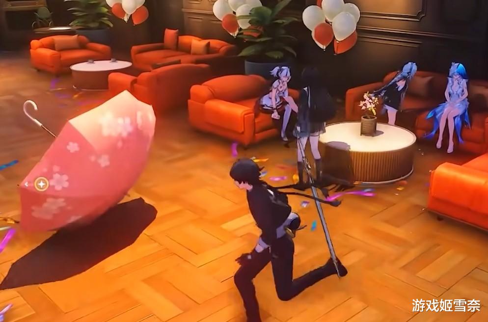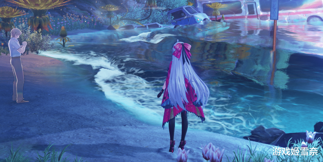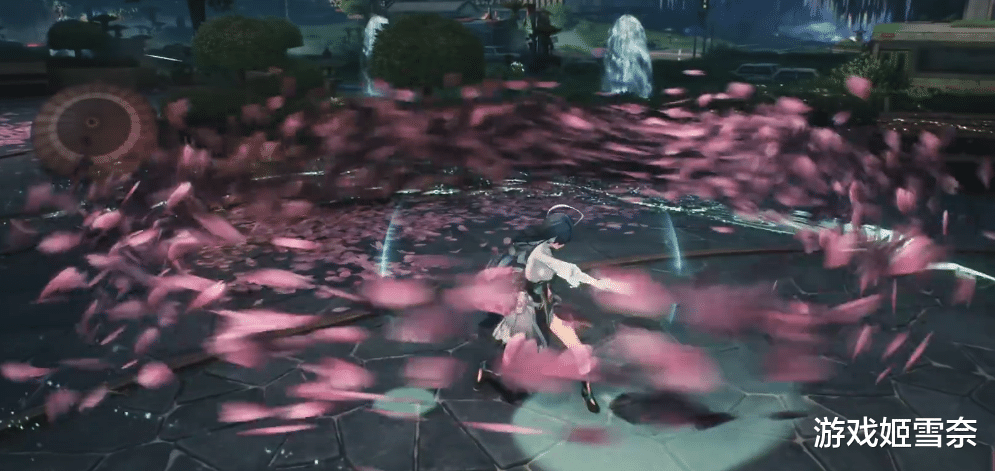 还有随处可见的各种互动物品,像是可以带着到处跑的雨伞,废都的垃圾易拉罐,掉在地上还闪光的灯笼,球场里的足球,以及每个植物经过时都会有碰撞而且碰撞体验都不相同,尤其是过剧情时有珍珠一样的白色泡沫球脚感真的好,踢一脚像气球一样一下飞老远又瞬间停下,我踢着它跑了一路。有玩家还发现所有的碰撞物都做了实机演算,他把雨伞打到路中间再开始过“CG”,结果发现伞在这段动画仍然出现,还被椿的植物触手碰到乱晃,本以为的CG动画居然是实机演算,太夸张了库洛。