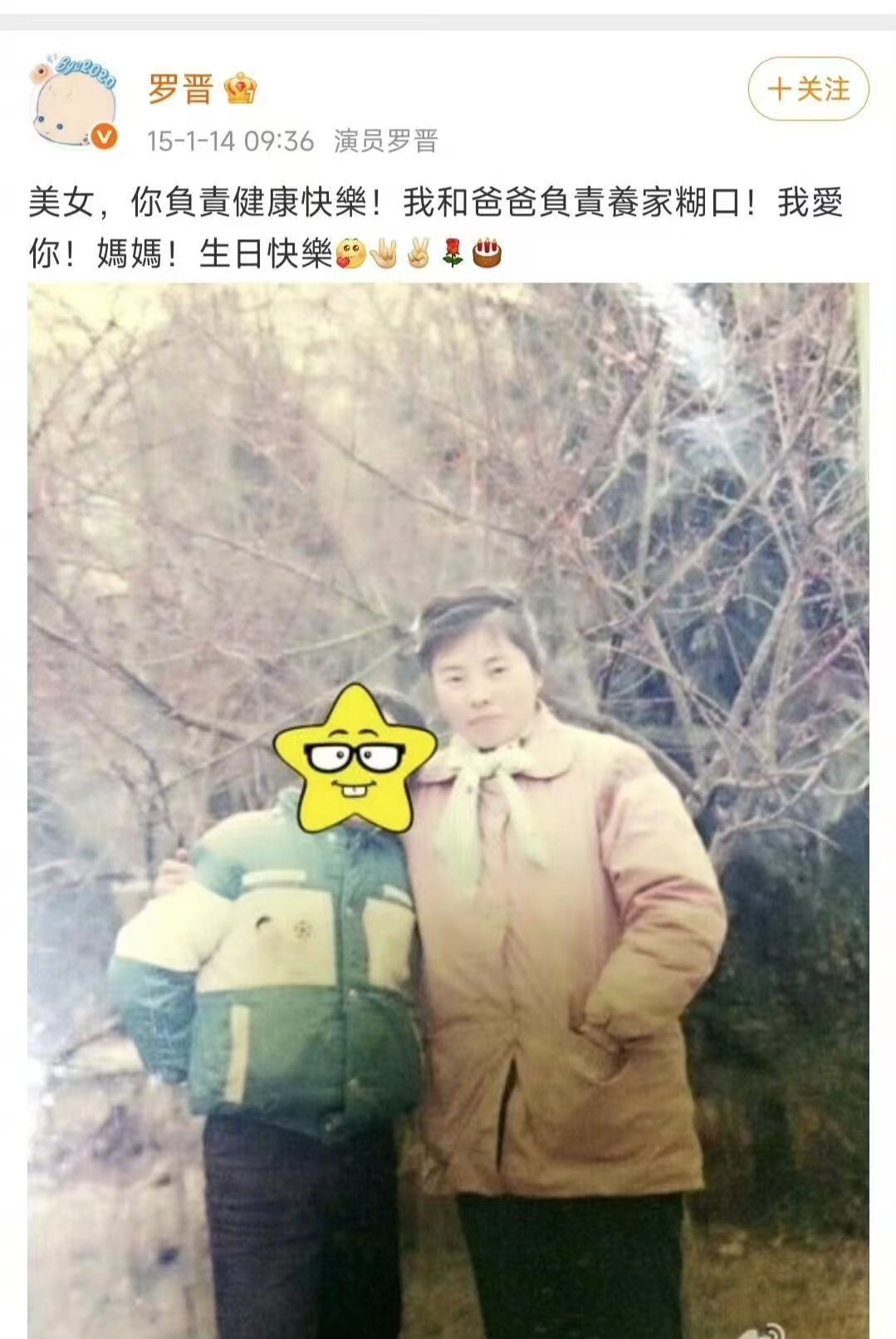 2014年罗晋回忆起了童年,在他的童年记忆里妈妈是很漂亮的美女。在医院的舞蹈室里很多人选妈妈跳舞,他则成了爸爸的小助手,专门帮爸爸赶着对妈妈有意思的人。一家人的氛围感,从这段文字就能感受到很温馨幸福。