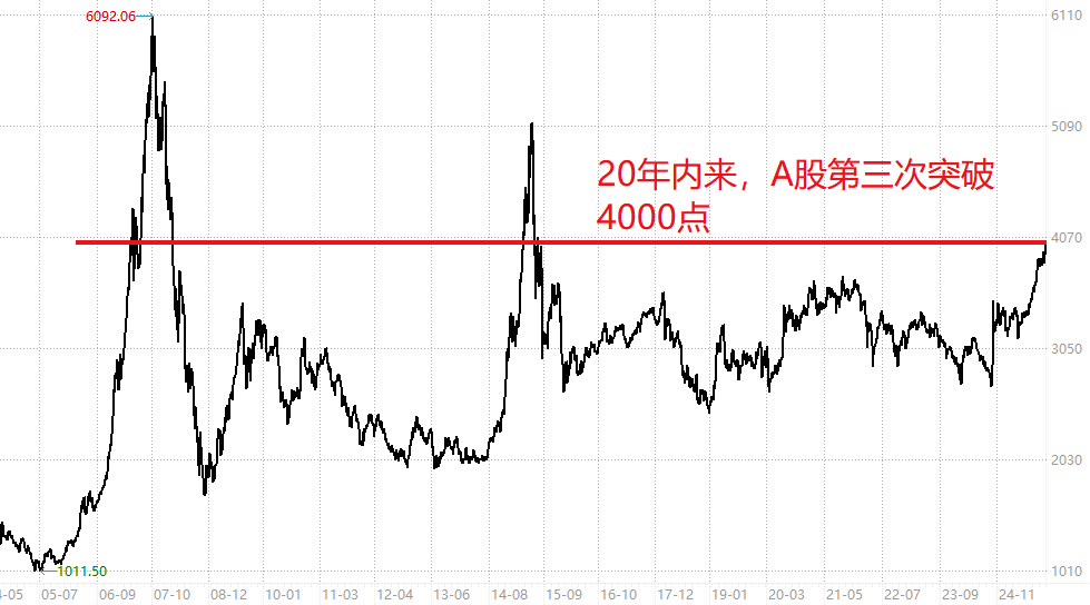 上一次A股突破4000点,是2015年4月8日。再再上一次,还是2007年5月9日。