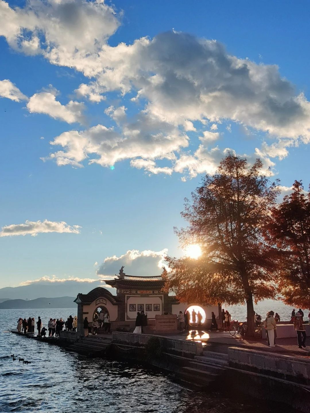 沿着长达 129 公里的洱海生态廊道骑行,绝对是一场不容错过的奇妙体验。廊道平坦而舒适,一侧是波光粼粼、广袤无垠的洱海,湖水在阳光的照耀下闪烁着金色的光芒,微风拂过,泛起层层涟漪;另一侧则是古朴典雅的白族传统村落,青瓦白墙的房屋错落有致地排列着,与葱郁的绿树相互映衬,充满了浓郁的生活气息。骑行其间,清新的湖风扑面而来,风中夹杂着淡淡的水草清香,仿佛能将所有的烦恼都一并带走。沿途,还会经过许多网红打卡点,如充满文艺气息的龙龛码头、热闹非凡的才村码头、别具特色的磻溪 S 湾等,每一处都能让你驻足停留,沉浸在洱海的独特韵味之中。