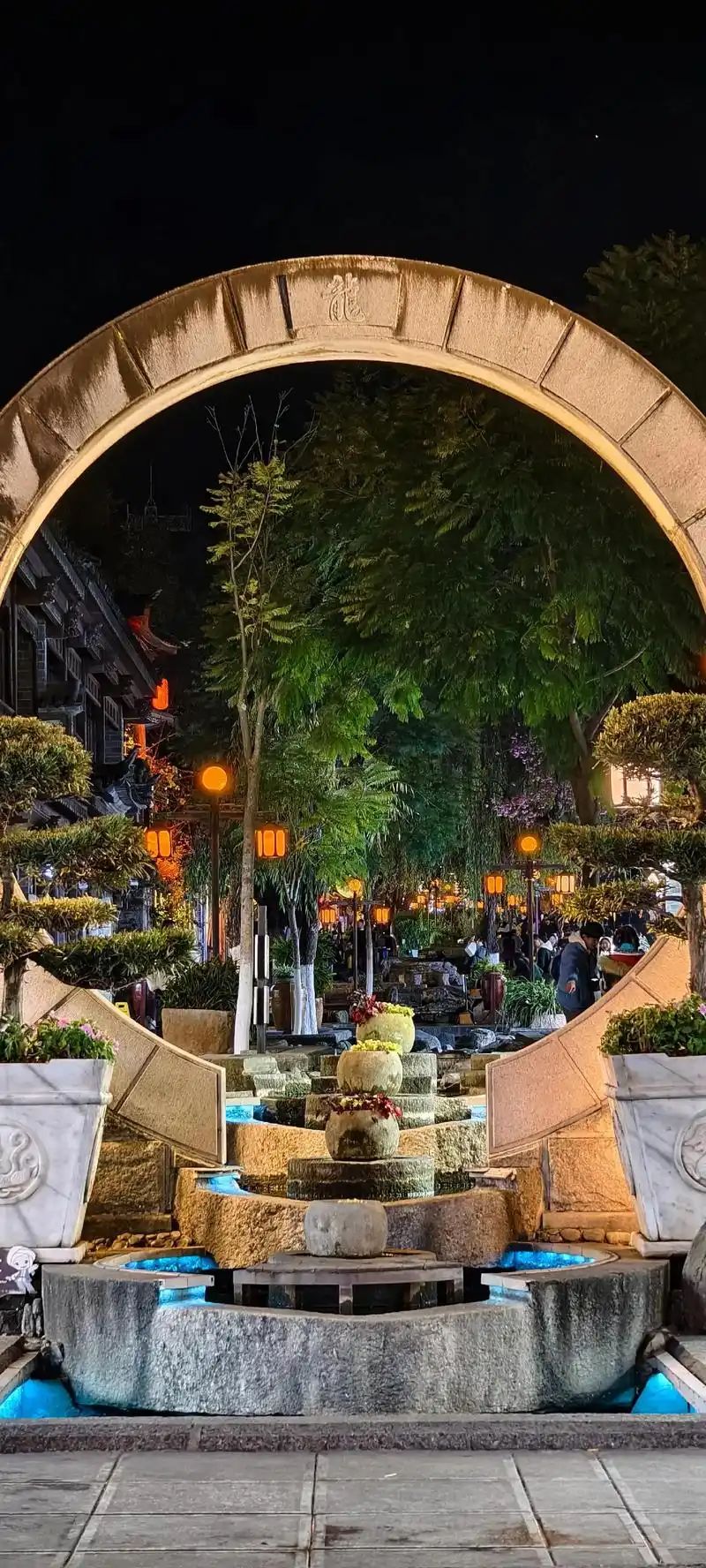 夜幕降临,古城又展现出另一番迷人的景象。华灯初上,整个古城被灯光装点得格外美丽。街道上熙熙攘攘,热闹非凡,各种特色小吃的香味弥漫在空气中,让人垂涎欲滴。你可以品尝一碗正宗的大理凉鸡米线,爽滑的米线搭配鲜嫩的鸡肉和香辣的调料,口感丰富,令人回味无穷;也可以来一份香甜软糯的玫瑰鲜花饼,感受那浓郁的玫瑰花香在口中散开。除了美食,古城的夜晚还有许多精彩的表演和活动,让你沉浸在大理的文化氛围中,流连忘返。