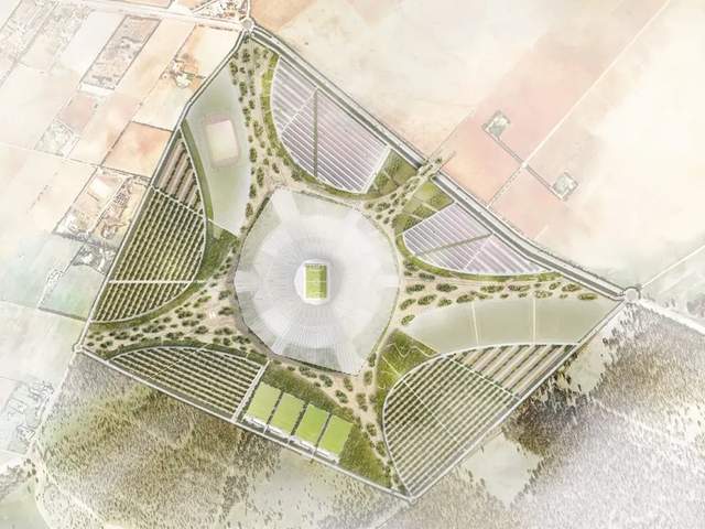 屋顶由一圈包含32座楼梯的环形结构支撑,同时构成气势恢宏的入口。在高出地面28米的位置,还将营造出绿意盎然的空中花园,为观众提供休闲与观景的开放空间。