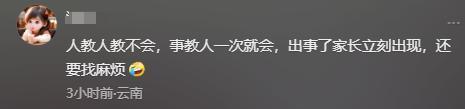 网友A表示:“人教人教不会,事教人一次就会,出事了家长立刻出现,还要找麻烦。”