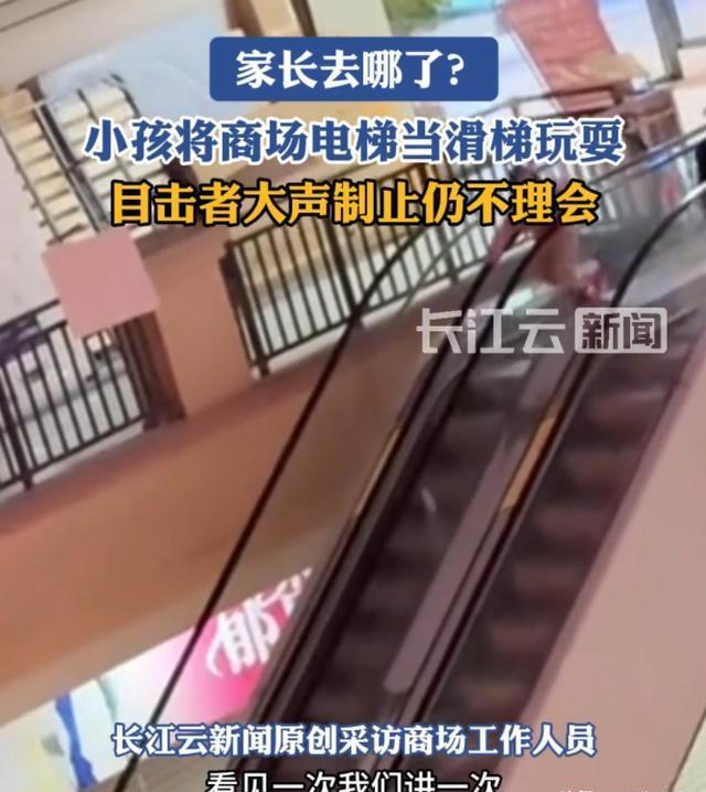 事后有记者采访了商场的工作人员,据他表示,他也没办法,这已经不是一两次了,最多的一天有五六次。电梯旁边有提醒的标语,可这3个小孩子还是照玩不误。