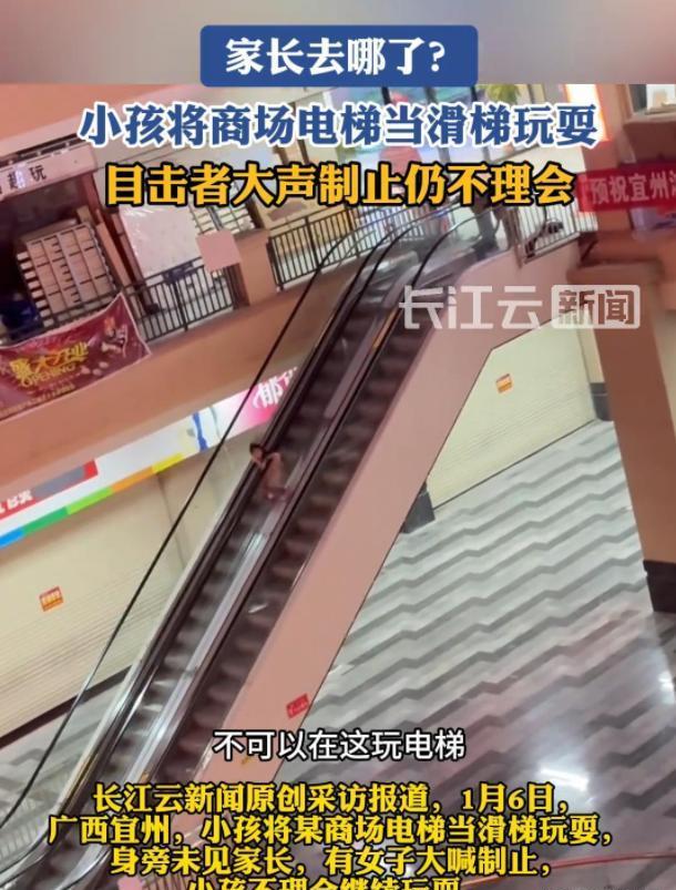 近日,据相关媒体报道,广西宜州的某一商场内,发生了一起让人看了心惊胆颤的事情。据画面显示,有3个大约十岁的小朋友,把商场内的电梯中间的过道,当成了滑梯在玩,周边也没看到家长的身影。
