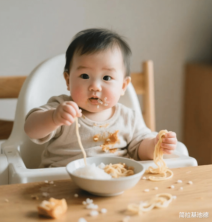 5. 手抓饭核爆现场 → 感官实验室满脸米粒的宝宝=米其林级研究员! 捏面条:研究黏度与形变的触觉实验扔食物:观察抛物线轨迹的重力测试