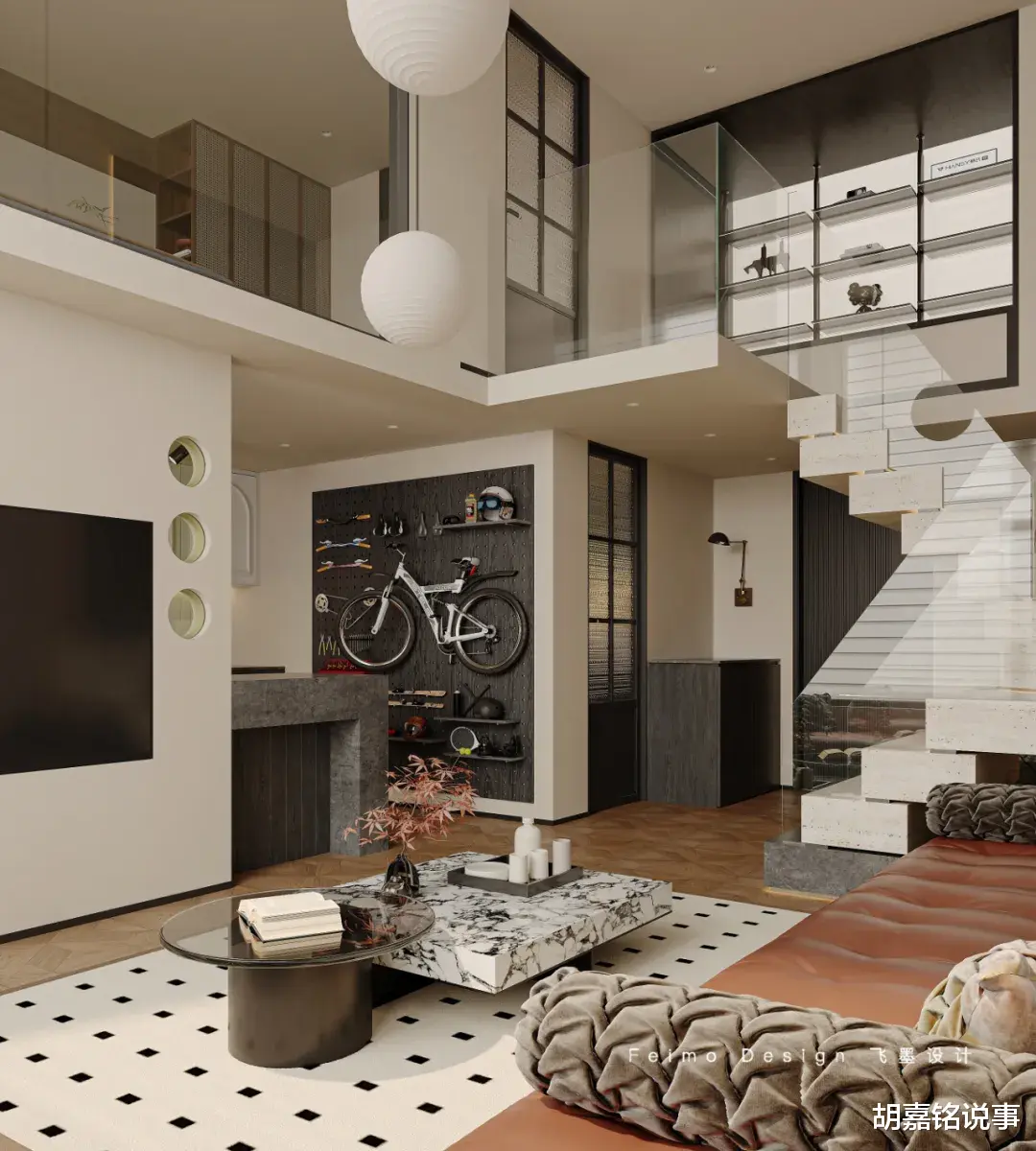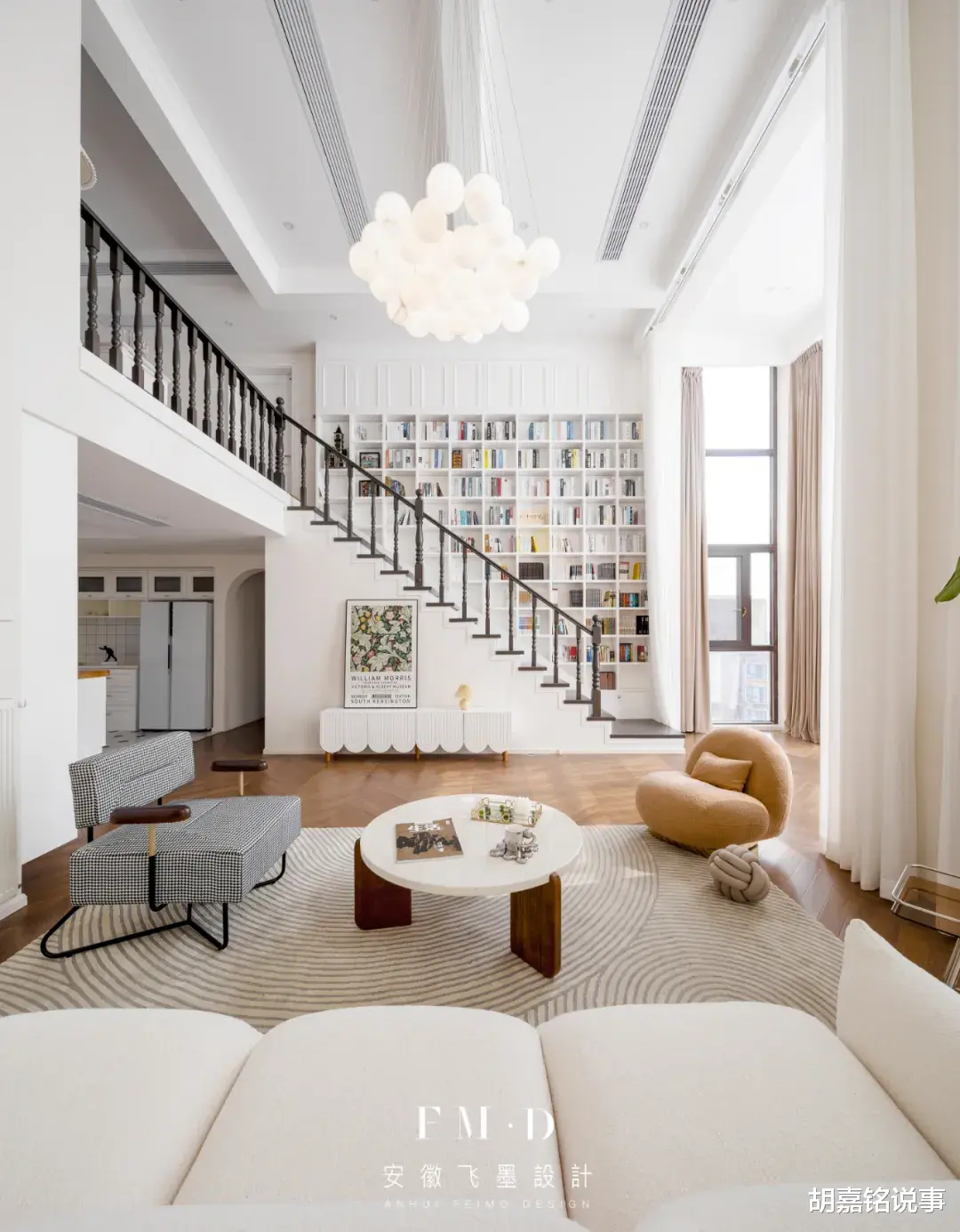 案例详情:合肥这套225㎡顶复装成了“美术馆”,旋转楼梯的氛围感一眼沦陷!