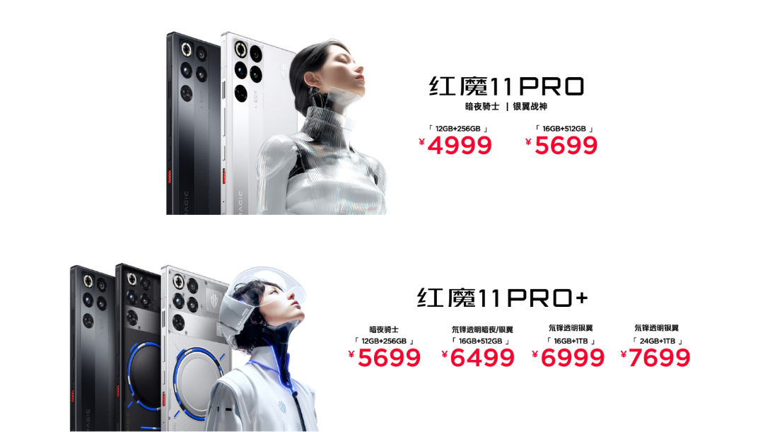 配色选择上,红魔 11 Pro 系列提供丰富方案满足不同用户审美:既有延续透明设计风格的氘锋透明银翼、氘锋透明暗夜,展现科技质感;也有经典沉稳的暗夜骑士、大气亮眼的银翼战神,无论是追求个性还是偏爱简约,都能找到心仪之选。