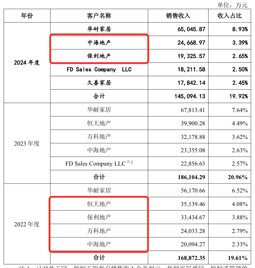 地产商的式微从马可波罗的招股书中也能印证,2021年时前五大客户中还有4个地产商:恒大、保利、中海、万科,到2024年时,前五大客户也就中海、保利尚在。
