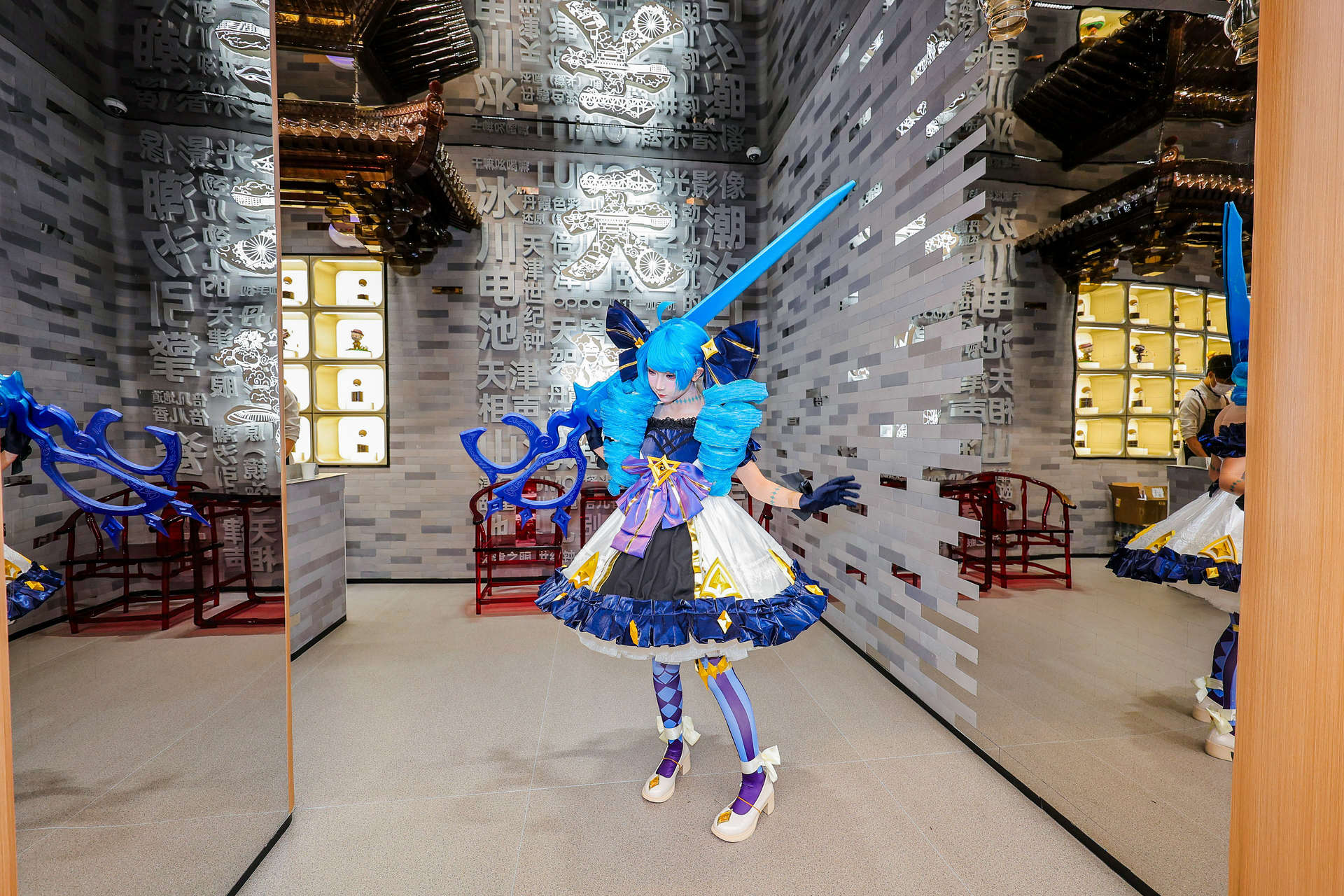 两层空间里,一层做产品展示、主题打卡、咖啡特调与游戏IP互动,二层做售后与观赛区;楼下喝“拧麻花摩卡”,楼上看LOL S赛,门口民国长衫的“小O”挥手打招呼,社交属性直接拉满。