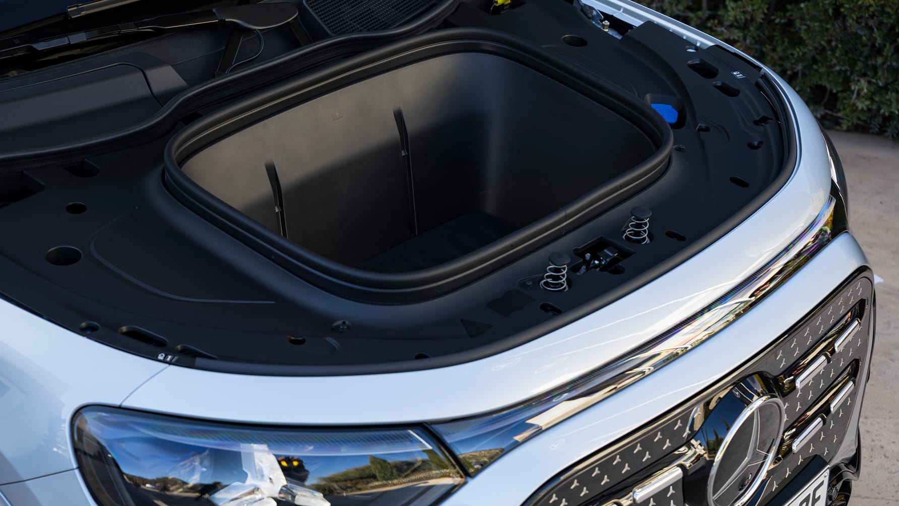 动力分两种:后驱单电机叫250+,双电机四驱叫350 4MATIC。也没丢SUV本色,带越野模式,四驱版还能拖2吨重的拖车,家用、轻度越野都够用。颜值这块,它一点不低调。前脸那块封闭式“中网”,镶了整整94颗星标,晚上还会亮,关都关不掉。