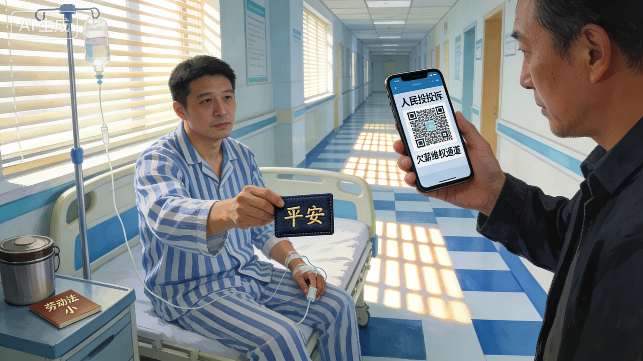 第二天一早,我揣着自己的医保卡(我们城市医保可以临时共享),还有连夜查好的人社局欠薪投诉表二维码,直奔医院。