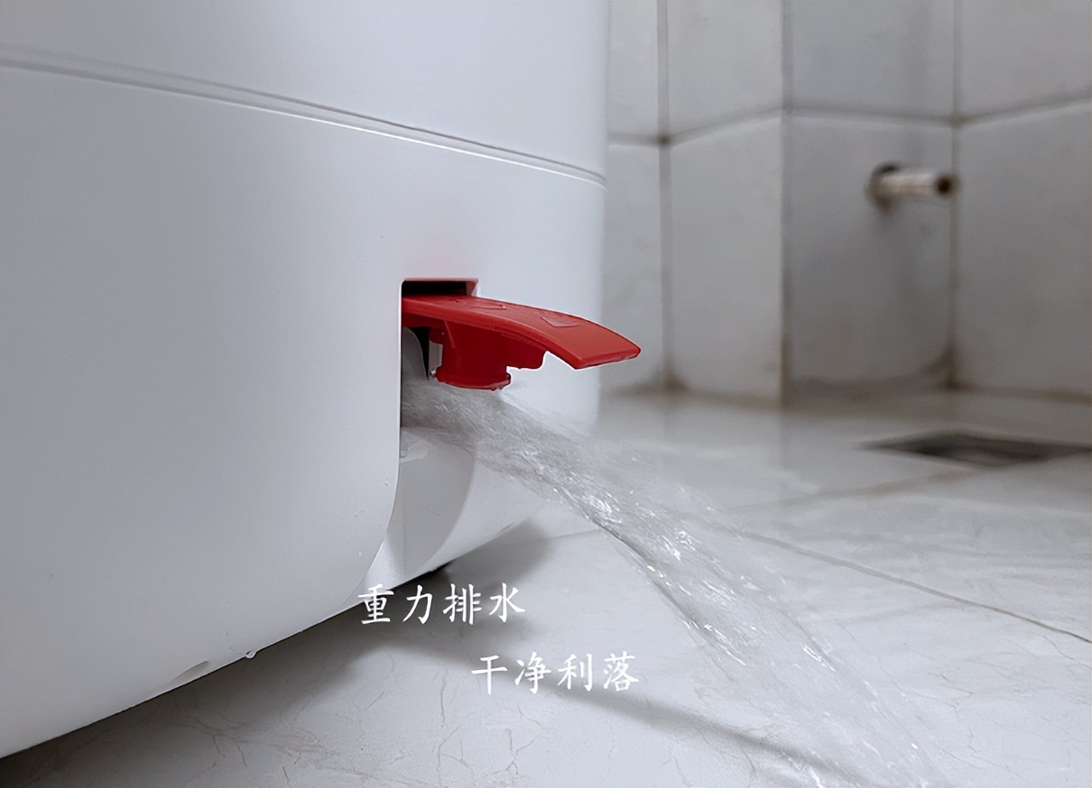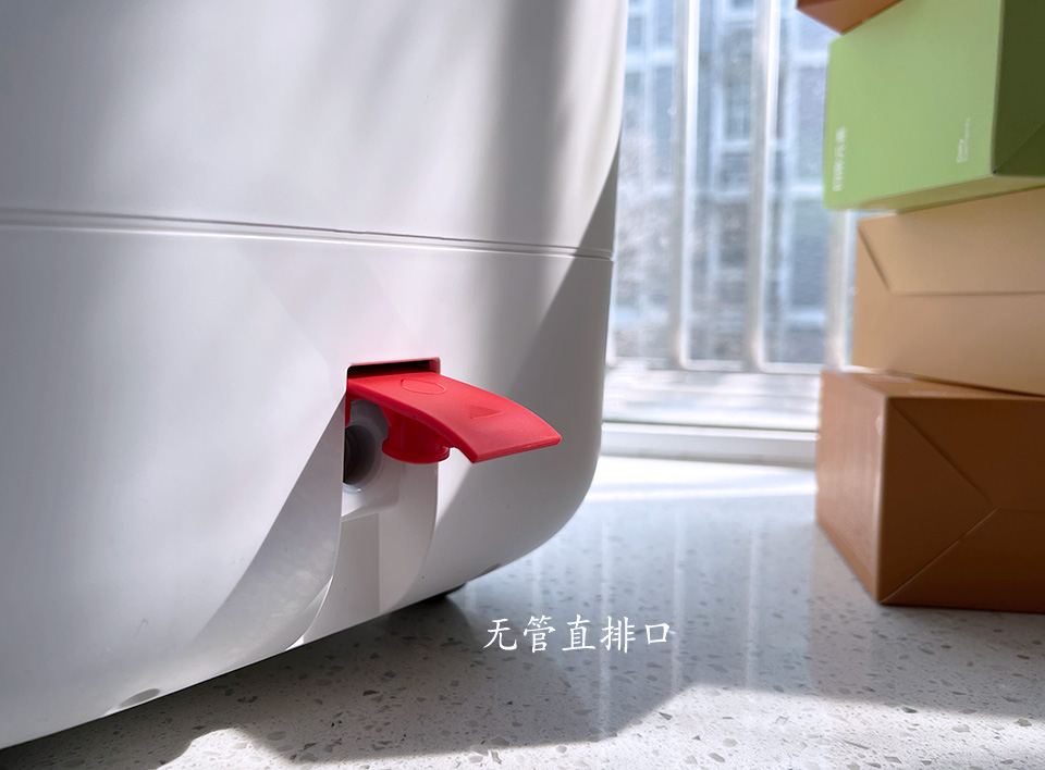 足浴器的底部还有个无管直排口,通过重力排水,排的更干净、彻底,用完以后,放在卫生间打开,静待即可,很是方便。