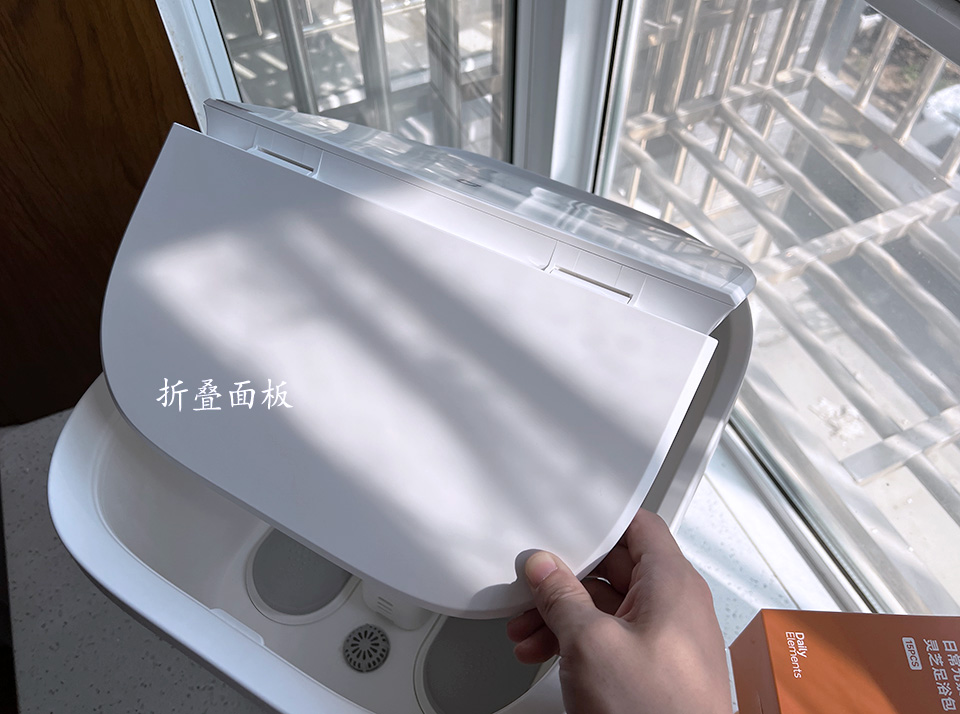 足浴器的盖板采用的是可折叠面板,一体式设计,收纳和使用都很方便;