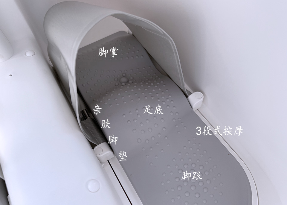 脚底为TPE护脚胶垫,触感舒服,底层还设置有3段的分区按摩,边泡边按摩,那叫一个舒适。
