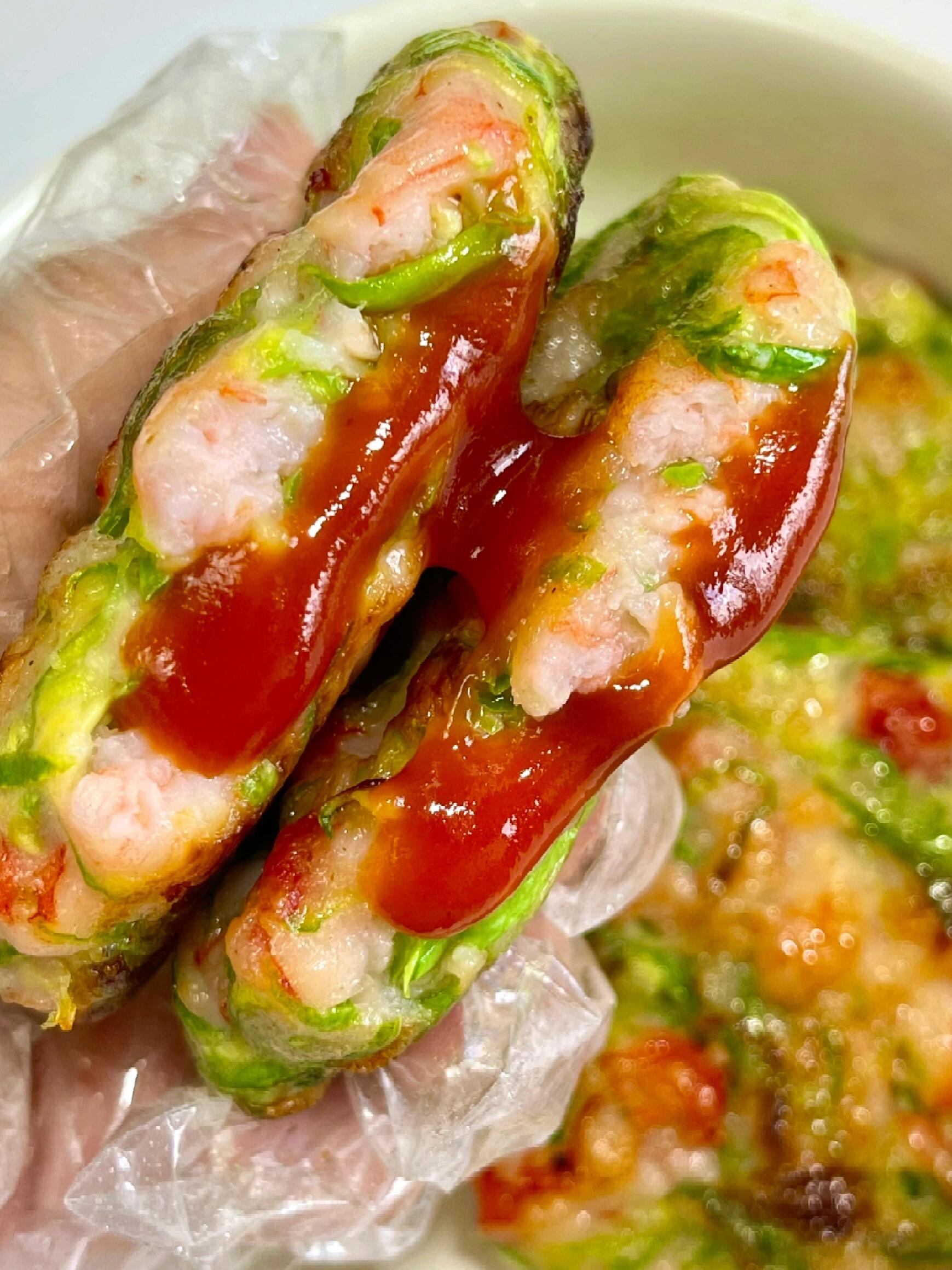 这道菜的灵感,源于我和闺蜜的减脂赌约。去年夏天,我们立下flag要穿回大学时的牛仔裤,结果第一周就因水煮菜集体崩溃。直到某天,我在菜市场盯着水灵灵的西葫芦发呆,突然想起外婆做的蔬菜虾饼,那是她用剩菜给孙辈发明的零食,没想到如今成了我的救星。