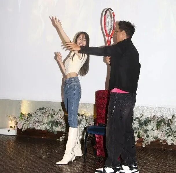 活动现场,心情大好的郭晋安还亲自指导庄子璇网球开球姿势,以作回礼,两人互动十分默契。