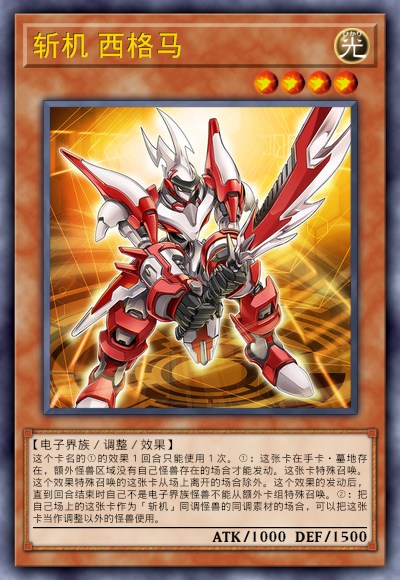 斩机西格玛,场上额外怪兽区不存在怪兽时可以发动,从手牌或者墓地中特殊召唤该卡以该方式召唤的该卡在离开场上时被除外。