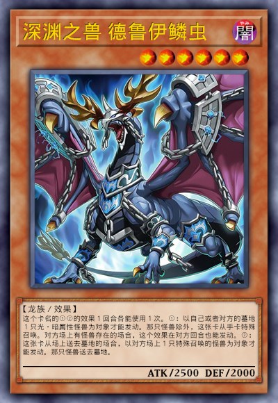 天敌圆武在珠泪死后迎来了防火墙的补强这也使得他成为当时环境中的主流之一,但是这个时候还有一套卡组同样收获了补强的力量这就是龙拳,而这套补强则是深渊兽。深渊兽全家为龙族怪兽除去本家大哥以外所有单卡都可以通过除外双方墓地当中一张光暗怪兽起跳,而斩机一卡启动的资源都会吃到深渊兽的效果,这也让深渊兽成为抓斩机的重要组件。