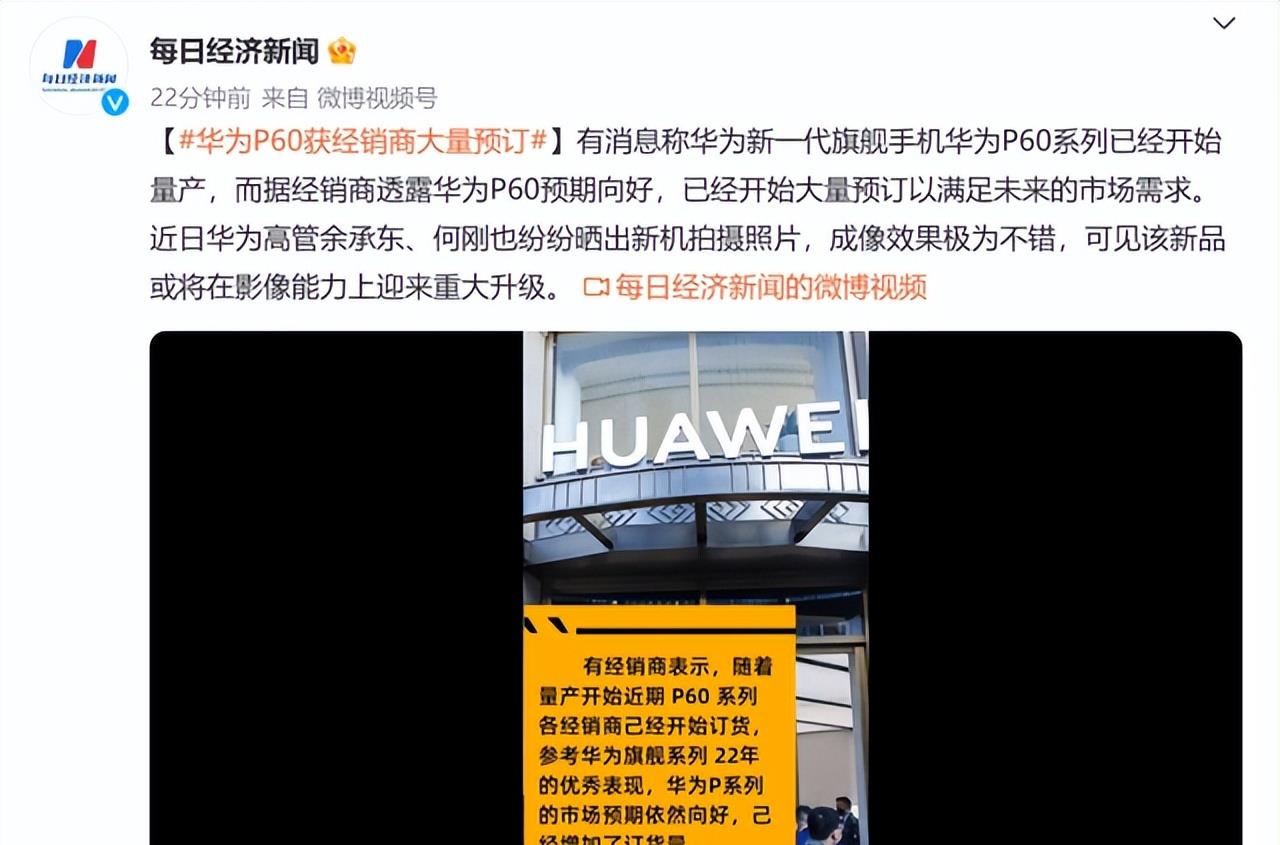 据每日经济新闻报道,华为P60系列目前已经开启量产工作,预计将在3月中下旬正式发布,目前正处于全力备货状态。经销商研判之后,认定华为P60系列销量必定火爆,害怕错过首批货源影响业绩,各级经销商大量向华为下达订单抢货。