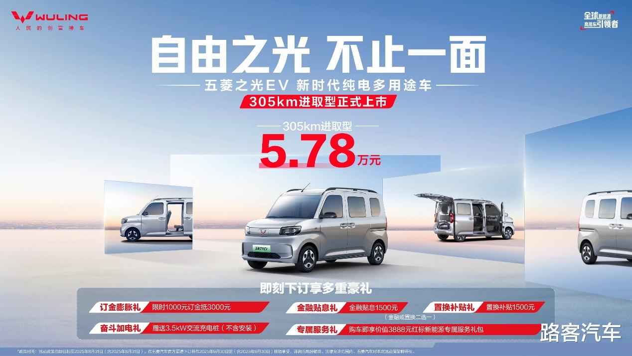 7月23日,在【百变之光 ・自由创造营】五菱之光EV用户嘉年华活动现场,五菱红标旗下新时代纯电多用途车——五菱之光EV305km进取型正式上市。新车以5.78万元的诚意定价,开启新能源商用车自由出行新纪元;更以“续航、安全、舒适”三大维度7大核心升级,进一步补强五菱之光EV家族新能源矩阵,满足全年龄段、全领域、全场景的“生意+生活”用车需求,重塑新能源商用车价值标准。