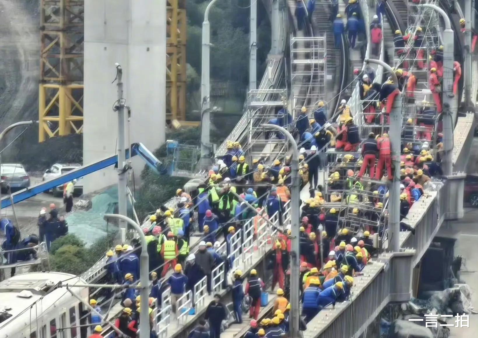 有知情人在评论区爆料,说是一个塔吊倒下来,直接把行驶中的列车车头和车窗玻璃砸了个稀巴烂。车刚开出站没多久,就遇上这飞来横祸,不得不停下来。车厢里头,那叫一个乱啊,满地都是碎玻璃,维修的师傅们已经在高架轨道上忙活起来了。