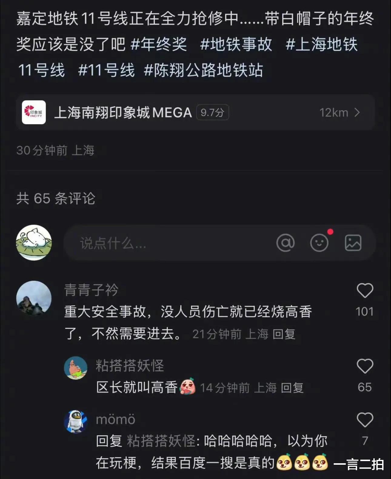 想想也真是心惊胆战,上海的一个网友周末出门,坐的就是11号线,结果碰上了这么个惊险的场景。这网友事后还心有余悸地说:“真是福大命大,感觉自己像是捡回了一条命!”
