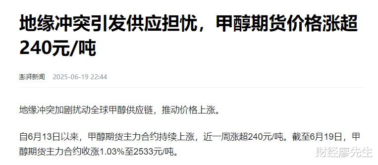 伊以冲突升级,我们甲醇进口60%来自伊朗,甲醇涨价这些公司受益