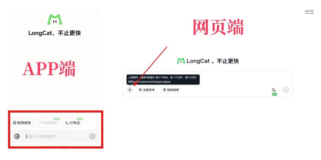 实测美团新模型打开LongCat APP,从首页可以看到,它目前支持文字/语音两种输入方式,并能进行语音通话(视频通话功能正在跑步入场中),Web端还支持上传图片和文件。